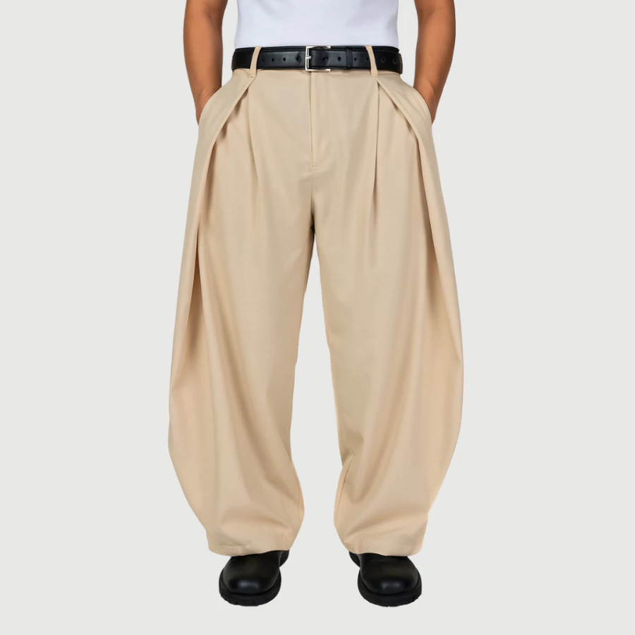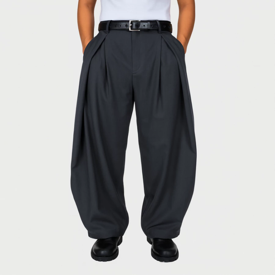 Introducing the MadeInMnl Flint Trouser Pants our signature wide-leg silhouette crafted with sculpted volume and refined structure. Designed with dramatic front pleats and a true barrel shape, these trousers create a bold, architectural profile while maintaining effortless movement and comfort.
